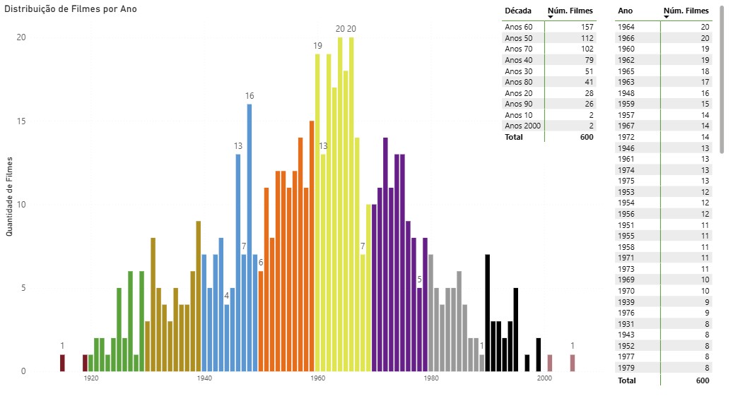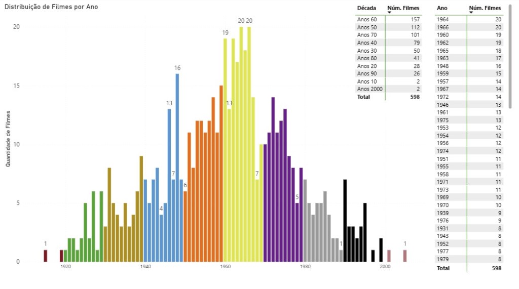 Qual foi a década mais comentada no PFC? Quais são os anos dos filmes “preferidos” do nosso Cast? Nesta visualização você consegue ter uma ideia da atemporalidade do Podcast Filmes Clássicos.